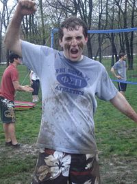 This year’s Apha Beta, instead of a hot sunny day, Brothers woke up to a stormy rainy morning. Where many teams did not show up, the Brothers of Delta Chi persevered, determined to have fun and claim first place for the second year. The on and off again pouring rain quickly turned the field into a mud bath with Brothers diving and splashing everywhere. Some even donned mud war paint showing that a little bit of inclement weather wouldn’t keep them down. By the end of the day though, the Stallions, Delta Chi’s A team, was only able to claim third. Defeat and the weather almost even stopped the traditional run to the river but 5 Brothers with Delta Chi pride kept it alive.