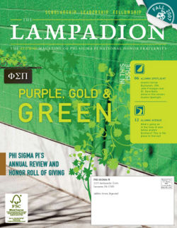 The Lampadion is one of Phi Sigma Pi's two publications, the other being the The Purple & Gold. The Phi Sigma Pi News Letter became The Lampadion in 1931. James K. Stoner served for two decades as the editor of the magazine. The main audience for the magazine is alumni Brothers. While still a separate publication from The Purple & Gold the two started being printed together in 2004. Printing the two together allowed for reduced costs as well as being more environmentally friendly. Also the two magazines now reach both undergraduate and alumni audiences.