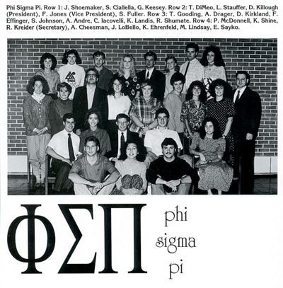 Sigma Chapter had been the last all-male chapter because a local all-female honor sorority existed on the campus of Millersville University. With only 12 active members remaining and 3 semesters of poor recruitment, National Officers Steven DiGuiseppe and Jeffrey Johnson inform Sigma Chapter that they must begin to recruit women or be shut down and reactivated co-ed anew. The Chapter splits, with several Brothers choosing to go inactive. The remaining Brothers comply and bring in almost 30 new Brothers, over half women, in 2 semesters. From 1986 through 1989, Sigma Chapter had been a major resource for traveling, organizing, and assisting the National Office as the fraternity began its national revitalization efforts. It was a critical source of manpower that the National Office needed to fuel the rebirth of the entire organization. By 1990, the chapter had weathered the storm and completely transformed itself.
